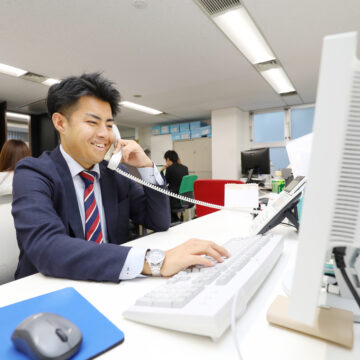 出勤。 1日のスケジュールを確認後、お客様のもとへ電話をしたり、訪問予定を入れたりします。