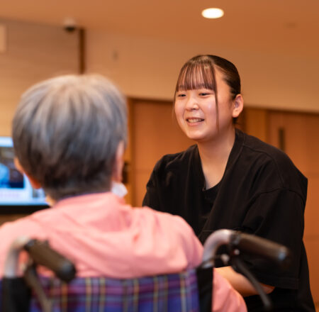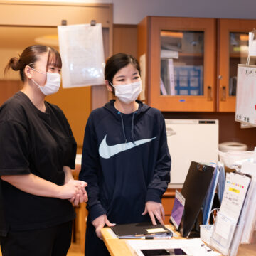 記録・申し送り その日のケア内容や利用者様の様子を記録し、次のシフトのスタッフへ引き継ぎます。チームで情報共有を行い、継続的なケアにつなげます。