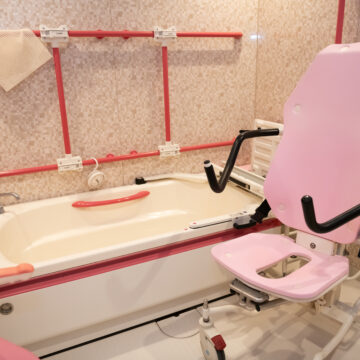 入浴・生活支援 入浴介助や移動のサポート、居室の整理などを行います。利用者様が快適に過ごせるよう生活環境を整えることも大切な仕事です。