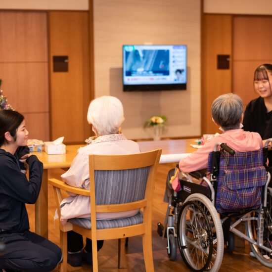 レクリエーション 体操やゲーム、季節イベントなどを行い、利用者様が楽しく過ごせる時間をつくります。交流を通して心身の健康をサポートします。