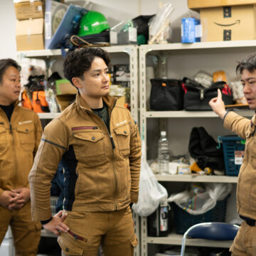 作業確認・翌日の準備 1日の作業内容を確認し、翌日の工事スケジュールを調整します。安全確認と現場の整理を行い、チームで情報共有をして業務終了です。