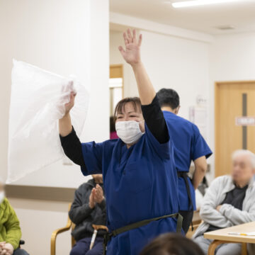 レクリエーション・機能訓練 体操やゲーム、趣味活動などを実施。利用者様同士の交流を促しながら、楽しみながら身体機能の維持・向上をサポートします。