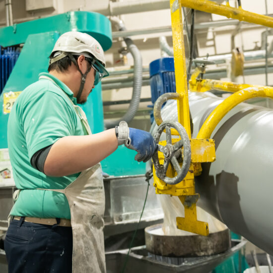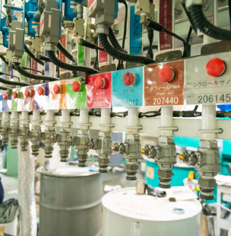塗料の調合・製造作業 専用設備を使って原料を混ぜ合わせ、塗料を製造。機械操作や工程管理を行いながら、安定した品質の製品づくりを進めます。